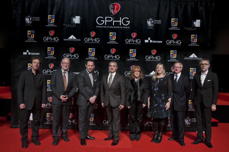 Eight members of the 2012 jury: Denis Flageollet (De Bethune), Jean-Philippe Arm, Aurel Bacs, Dr. Rony Abi Nakhlé, Paula Pujia, Elizabeth Doerr, Dominique Fléchon, Alexey Tarkhanov