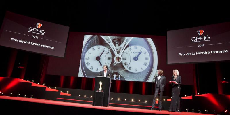 Maximilian Büsser receives one of the two prizes awarded to the MB&F LM1 at the 2012 edition of the Grand Prix d'Horlogerie de Genève