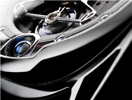 Lune sphérique, acier bleui, balancier en silicium/platine, système triple pare-chute et berceaux mobiles, cette montre incarne la «vision résolument futuriste de l’art horloger» de De Bethune. Son raffinement technique va de pair avec l’audace de son design : la beauté à couper le souffle de la DB28 s’apprécie quand on la regarde mais aussi quand on la porte, grâce notamment au boîtier ultra-léger en titane et aux berceaux mobiles qui s’adaptent à la taille et aux mouvements du poignet.