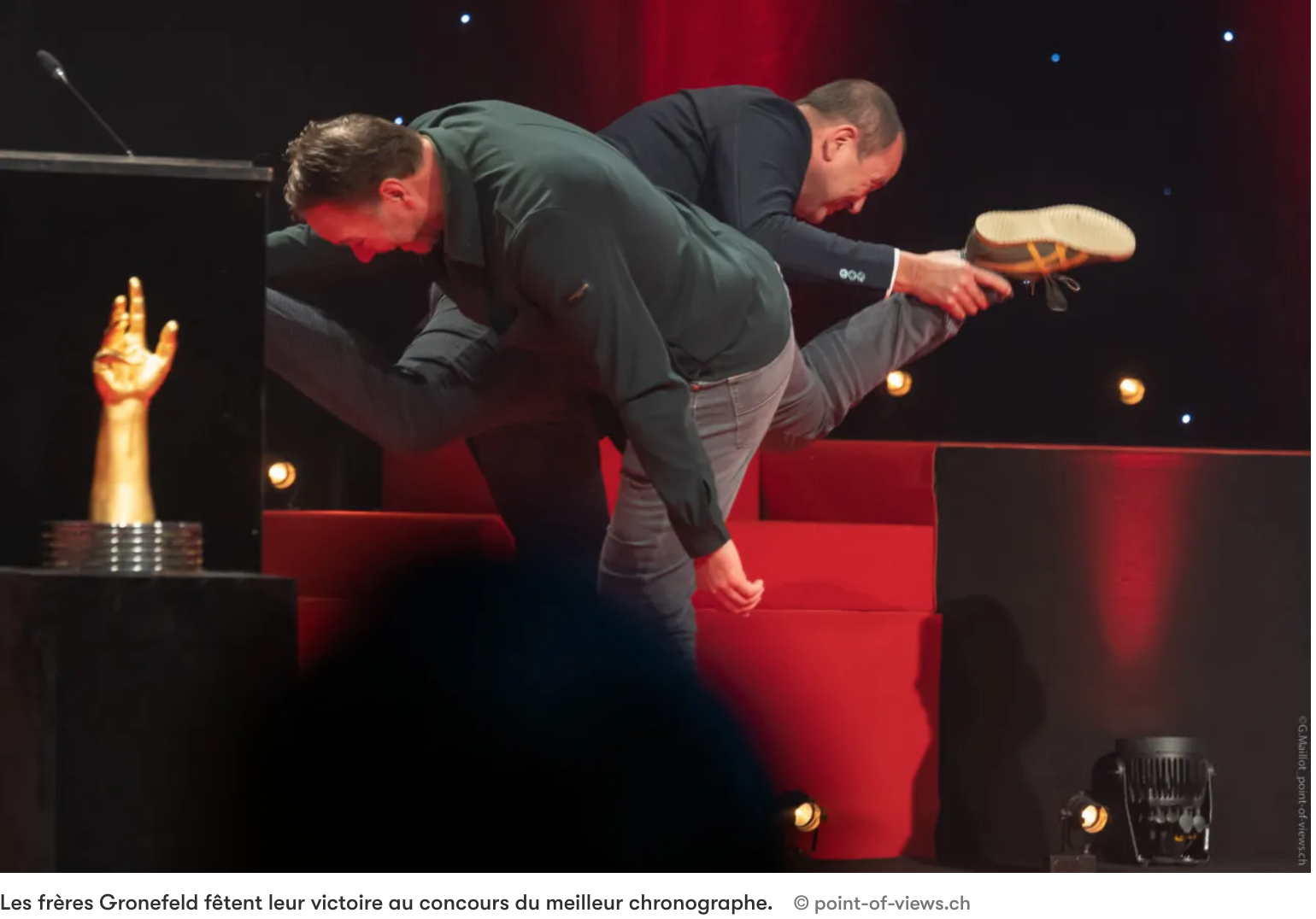 Les frères Gronefeld ont gagné le prix du meilleur chronographe, ce qui a constitué l'une des quelques surprises de la cérémonie, car une foule de marques indépendantes – Akrivia, H Moser & Cie, Ferdinand Berthoud – ont montré à certaines des plus grandes marques que les gros budgets de marketing et la reconnaissance mondiale ne garantissent pas toujours un trophée GPHG et le vote du jury.
