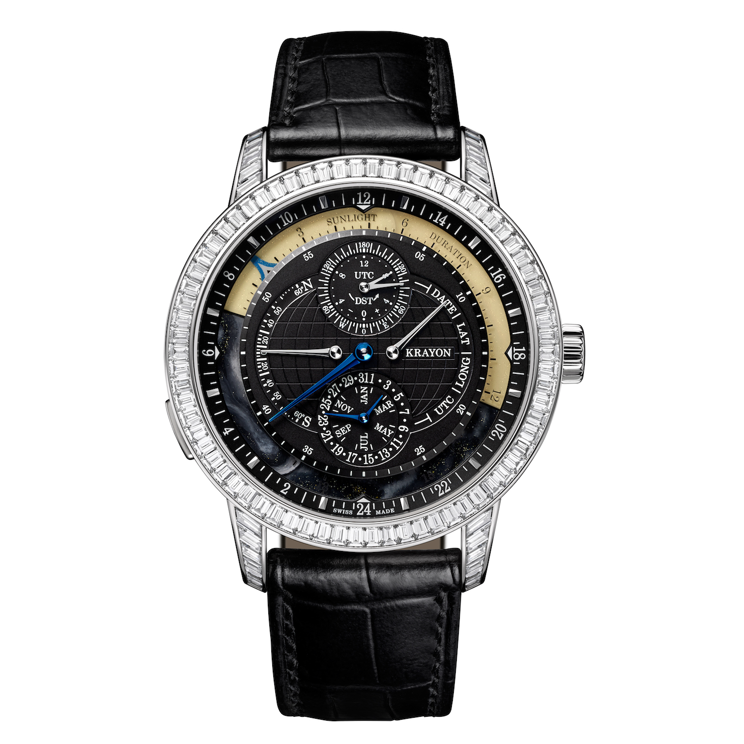 An ultra complex piece, the Krayon Everywhere can display Sunrise and Sunset Indications all over the world – an impressive mechanical calculator, which also indicates time by hours, minutes and seconds. The version that wins the prize this year is the latest diamond-adorned edition.