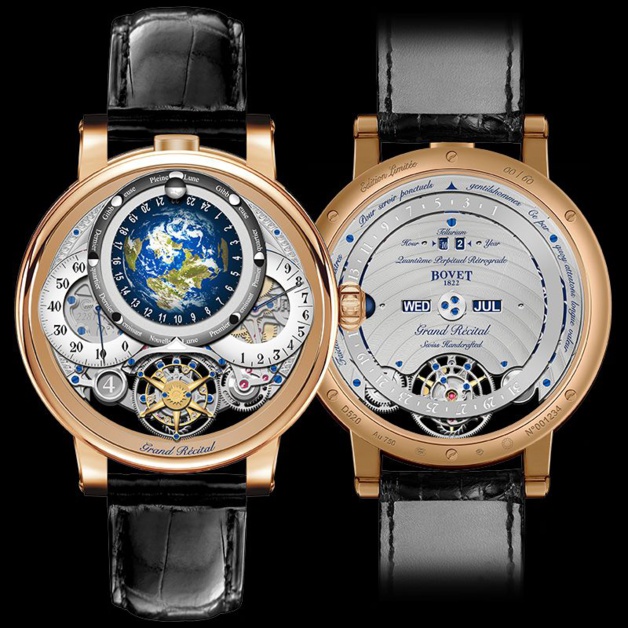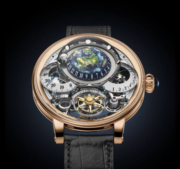 Le tourbillon Récital 22 Grand Récital (série limitée à 60 exemplaires) invite le collectionneur à observer les évolutions des trois astres qui rythment notre vie : le Soleil, la Terre et la Lune. Cette représentation cinématique des trois astres est connue sous le nom de Tellurium-Orrery.