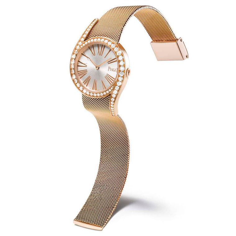 Piaget's Limelight Gala Milanese watch in pink gold with diamonds on the lugs and a supple gold mesh bracelet (£27,700).