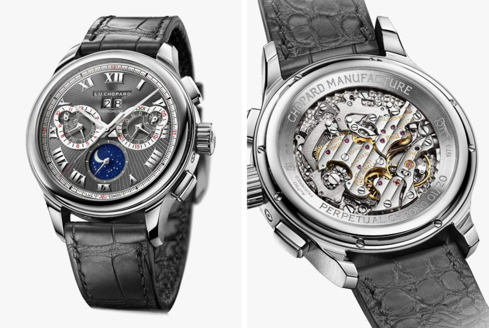 Chopard’s Perpetual Chrono not only features a full perpetual calendar with a moonphase display, but a chronograph movement as well. The watch has both the Geneva seal and a COSC certification.